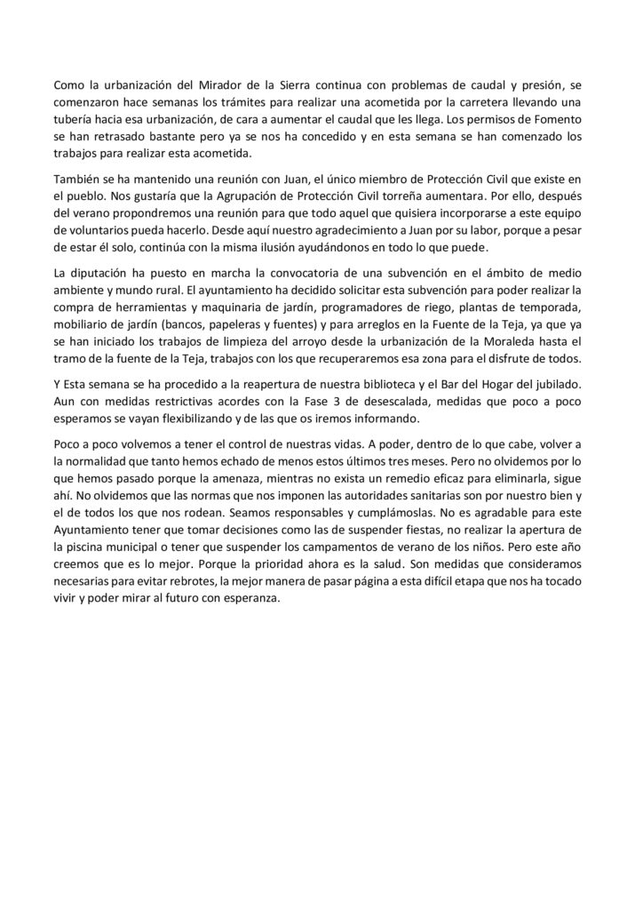 Resumen de acciones de gobierno – Junio 2020
